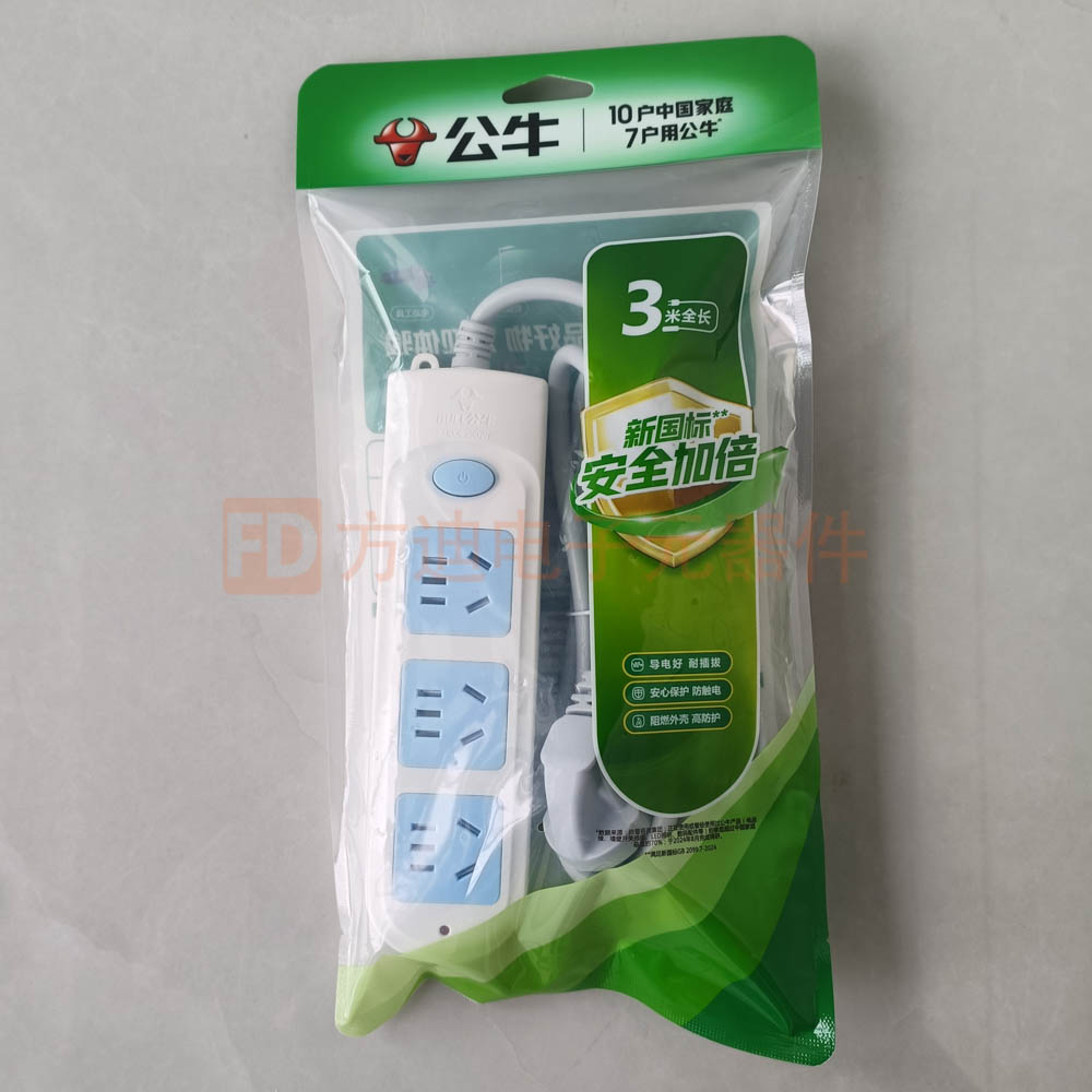 公牛插排3位 3米线 带开关